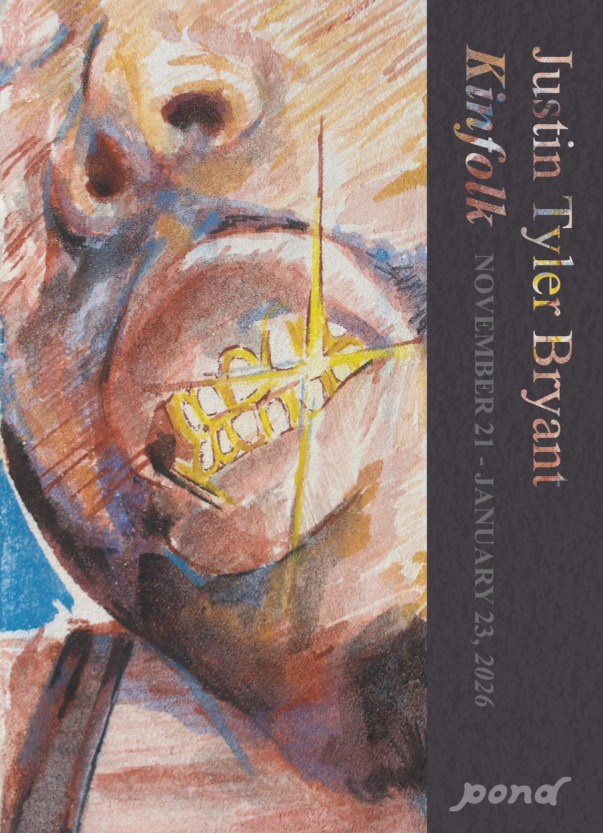 Pond is pleased to present Kinfolk, a solo-exhibition of new acrylic and fresco paintings by Little Rock-based artist, Justin Tyler Bryant. Exploring ideas surrounding Black representation in contemporary painting, Kinfolk reframes the millennia-old technique of fresco as a tool for reclamation and agency over a white regulated and dominated art history.